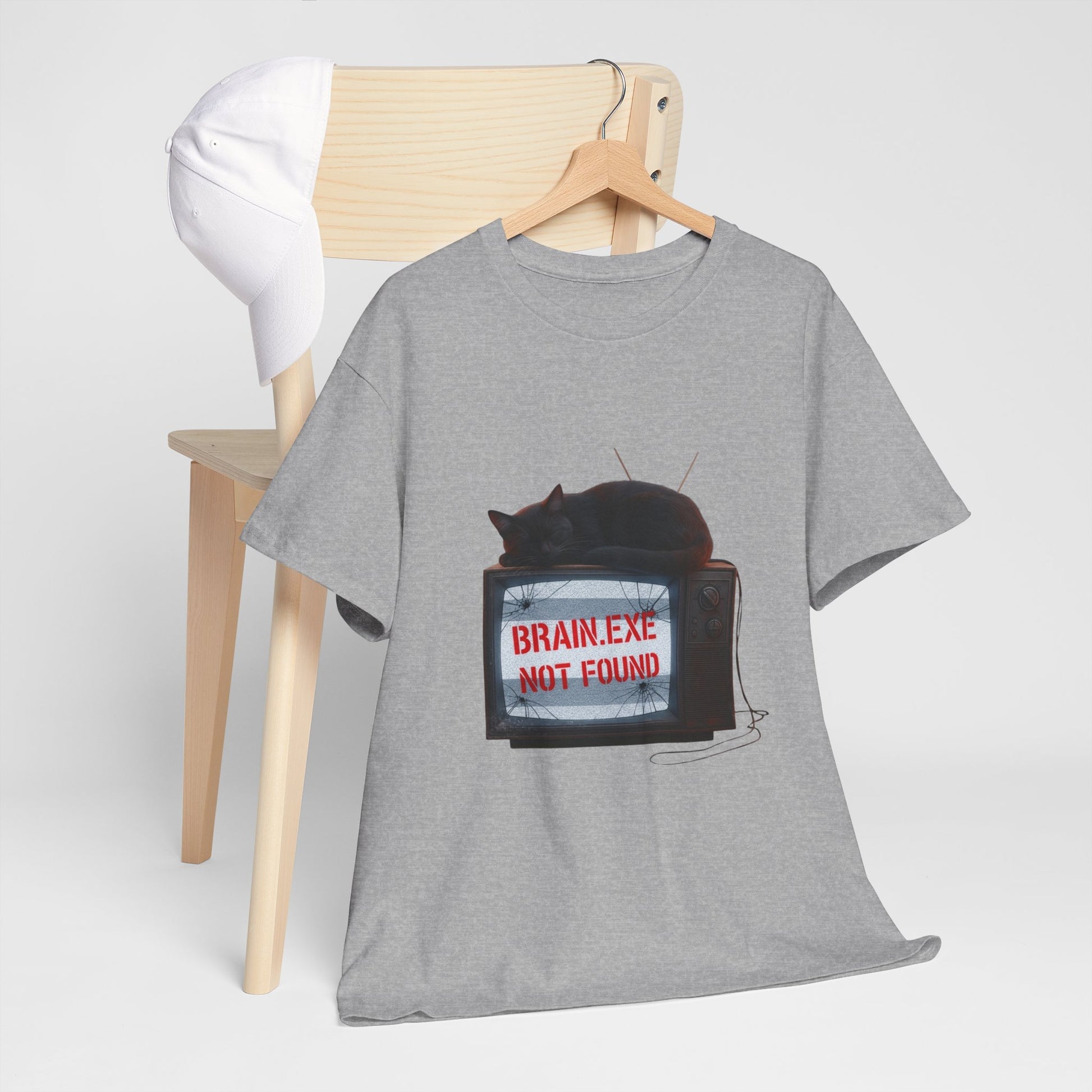 When your mind officially crashes and enters low power mode. This cinematic design features a cat asleep on a Blue Screen of Death monitor. The ultimate shirt for mental shutdown.