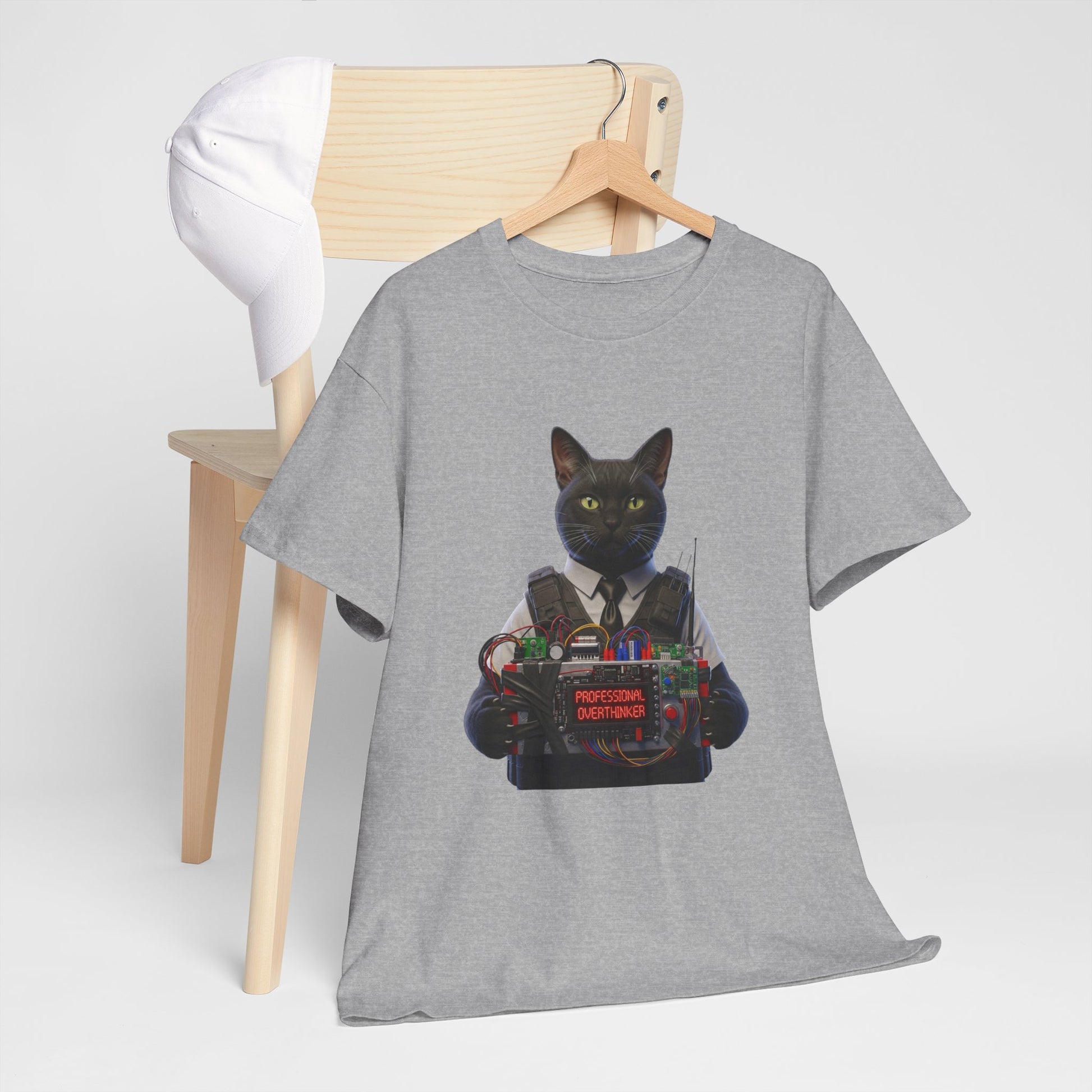 My brain is a ticking device. This dramatic cinematic design features a cat holding a complex, wired bomb. Perfect for anyone whose internal monologue runs on extreme anxiety and complexity.