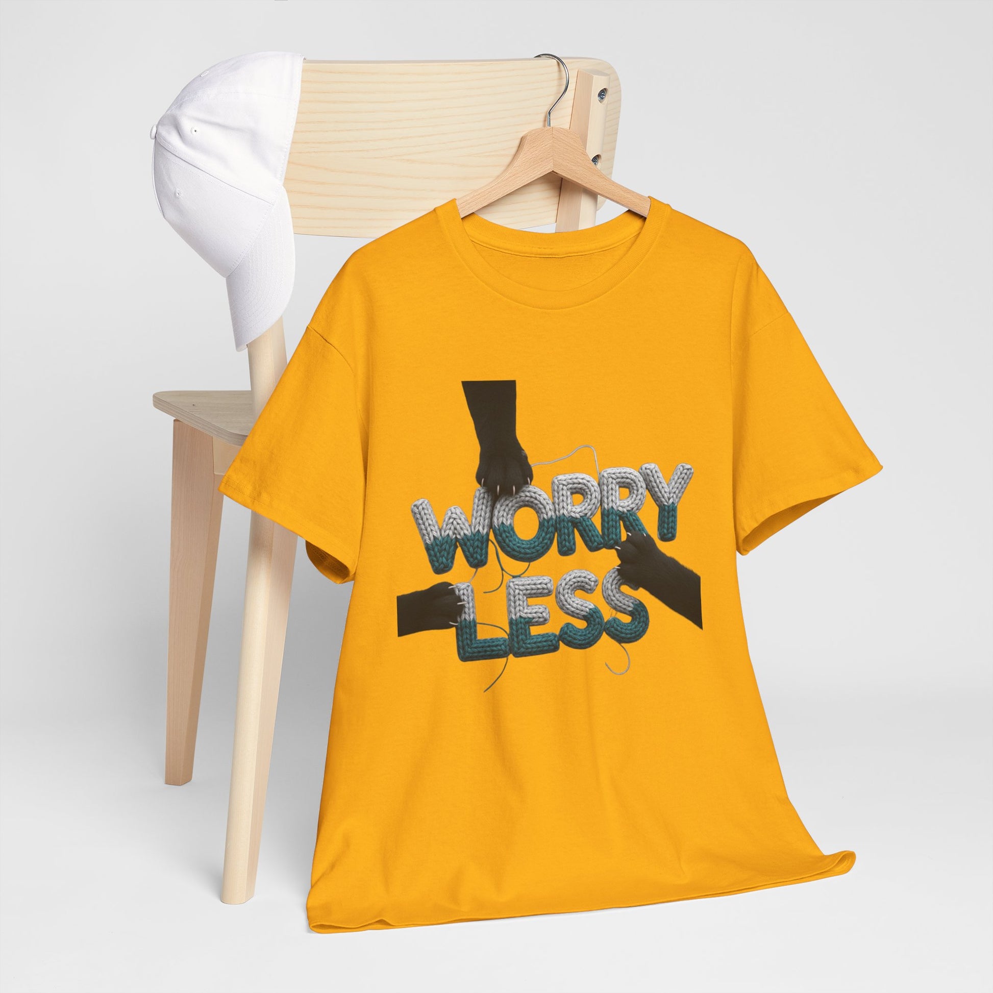 Don’t let the small things unravel you. This high-texture design features a cat playfully pushing a giant yarn ball on the word "WORRY". A gentle reminder for peace and calm.